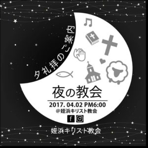 姪浜教会では、2日の18時から夕礼拝を行います。いつも日曜日に予定があり礼拝に来られない方や初めて教会に来られる方、どなたでも歓迎します!今回は青年グループが企画、運営を行います。礼拝のスタイルや讃美歌など少しいつもとは違う”夜の教会”に是非遊びに来て下さい♪