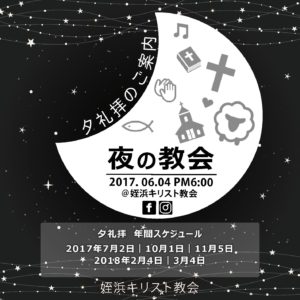姪浜教会では、6月4日の18時から夕礼拝を行います。いつも日曜日に予定があり礼拝に来られない方や初めて教会に来られる方、どなたでも歓迎します!今回は青年グループ…